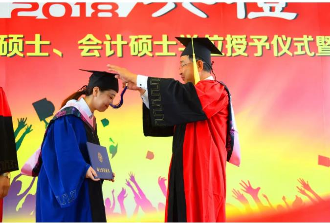典礼进行第二项:花落成实,收获希望。首先,由管理学院学位评定委员会主席许正良教授宣读《吉林大学学位评定委员会授予硕士学位的决定》。随后,进入到最激动人心的学位授予仪式,毕业生们怀着无比激动的心情逐一走上主席台从许正良教授的手中领取学位证书,然后由院长赵树宽教授为每位毕业生拨穗正冠。接下来,张公一副院长宣读《关于吉林大学管理学院2018年专业学位硕士研究生相关表彰决定》,并由院领导为获奖同学颁发证书。
