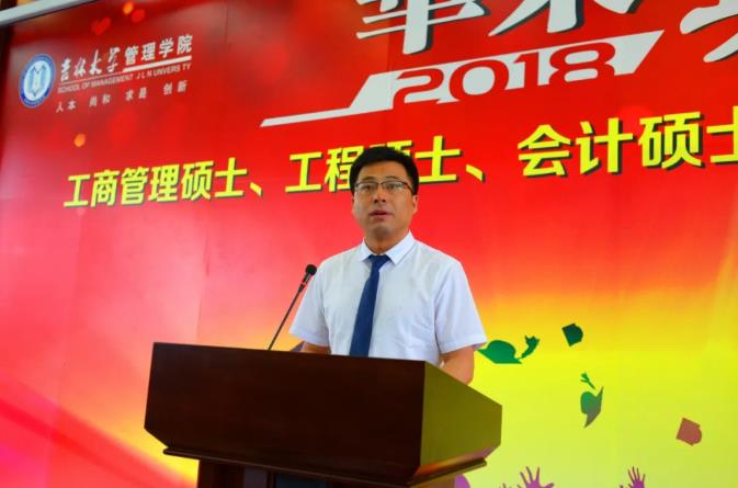 2018年7月7日,在专业学位教育中心工作人员的精心准备下,吉林大学管理学院2018年专业学位硕士研究生学位授予仪式暨毕业典礼在逸夫楼516隆重举行。管理学院党委书记张兴林,管理学院院长赵树宽,吉林大学研究生院培养办公室副主任宋淑敏,管理学院学位评定委员会主席许正良,管理学院党委副书记方长春,管理学院副院长樊雪梅,管理学院党委副书记兼副院长彭鹏,管理学院技术经济系主任费宇鹏,管理学院管理工程系主任陈海涛,管理学院工程管理系主任田波,管理学院企业管理系主任徐颖,管理学院财务会计系副主任陈丹,管理学院信息管理系党支部书记马捷,管理学院国际商务系党支部书记马鸿佳等领导、老师和嘉宾出席典礼,本次典礼由管理学院副院长张公一主持,2018年专业学位硕士毕业生及其亲朋好友共同见证了这一难忘的毕业时刻。