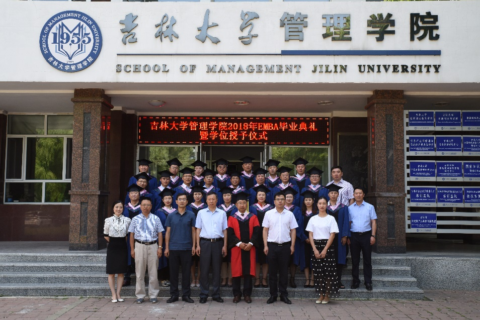 最后,在校歌中吉林大学管理学院2018年EMBA学位授予仪式暨毕业典礼圆满礼成。典礼结束,所有EMBA毕业生与院领导老师在管理学院楼前合影留念。