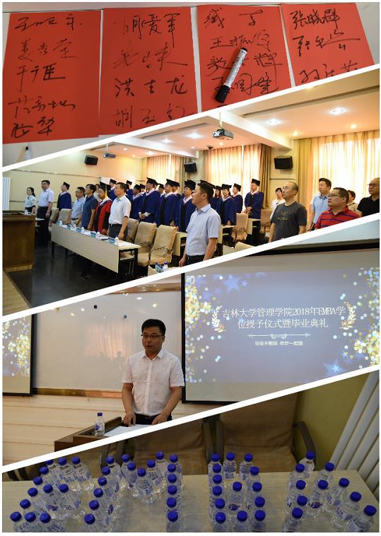 2018年6月30日上午,吉林大学管理学院2018年EMBA学位授予仪式暨毕业典礼在吉林大学管理学院EMBA教室隆重举行。吉林大学管理学院党委书记张兴林、管理学院院长赵树宽、管理学院副书记方长春、管理学院副院长张公一、国际商务系教授高贵富、党委办公室主任王雷、专业学位办公室主任房伟以及2013、2014、2016级EMBA学员及其家属出席了本次毕业典礼。毕业典礼由张公一副院长主持。