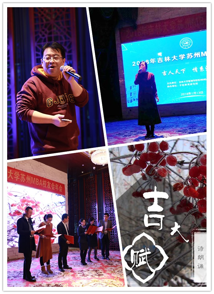 最后,也感谢学校、学院对苏州校友的关怀,感谢校友企业和社会企业对本次年会的大力支持,感谢校友的精彩演出!祝吉林大学管理学院苏州MBA校友会越来越好!