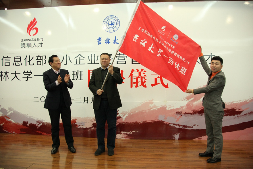 2017年12月9日上午,2017-2018年度工业和信息化部中小企业经营管理领军人才吉林大学-吉林班在吉林大学管理学院圆满开班。工业和信息化部中小企业局副巡视员陈萌,工业和信息化部人才交流中心党委副书记陈新,吉林省工业和信息化厅副厅长孙大维、民营经济处副处长郑辉,吉林大学管理学院院长赵树宽、副院长张公一,以及2017-2018年度工业和信息化部中小企业经营管理领军人才吉林大学-吉林班的全体学员和部分往届领军学员出席了开班仪式。