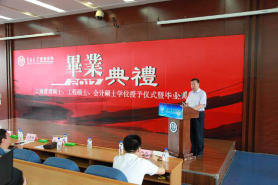 在这“荷花送香气,竹露滴清响”的七月时节,我们迎来了吉林大学管理学院专业学位研究生毕业典礼,又一批学子满载知识,与母校告别的时刻即将来临。 2017年7月2日上午,吉林大学管理学院2017年工商管理硕士、工程硕士、会计硕士专业学位研究生毕业典礼暨学位授予仪式在吉大南岭校区逸夫楼敬文厅隆重举行。出席本次毕业典礼的有:管理学院院长赵树宽、党委书记张兴林、副院长李春好、党委副书记方长春、副院长王晰巍、财务会计系主任杨刚、MBA教育中心主任房伟以及各专业毕业生代表出席毕业典礼,部分毕业生亲友也前来观礼。毕业典礼由副院长张公一主持。