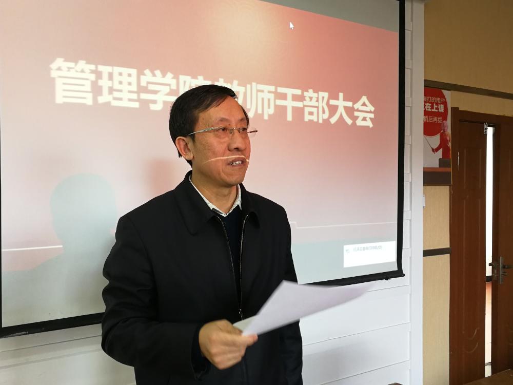 2019年1月16日上午,管理学院在EMBA教室召开教师干部大会,宣布学院院长任免决定。