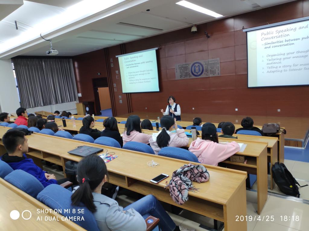 “2019管理学院学生国际竞争力提升训练营”第三、四次讲座分别于4月18日、25日在南岭校区逸夫楼B516顺利举办。为了更好提升学生英语能力,学院邀请吉林大学外国语学院沈红梅教授做了题为:“英语与国际竞争力”和“如何提高英语公共演讲能力”两场讲座。