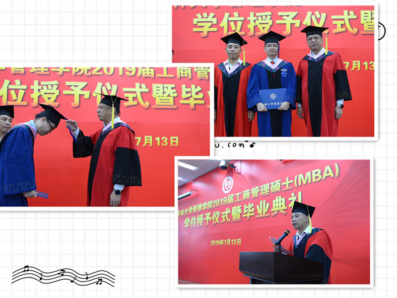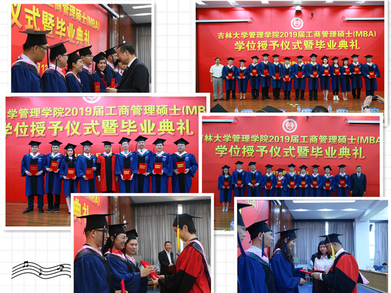 管理学院副院长、学院学位评定委员会主席陈海涛教授宣读了“吉林大学学位评定委员会授予工商管理硕士(MBA)研究生硕士学位的决定”。毕业生们有序的上台完成拨穗仪式,李北伟教授、陈海涛教授为毕业生们逐一颁发学位证书并合影留念。