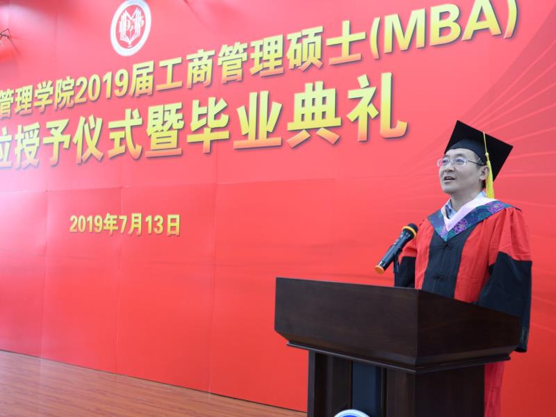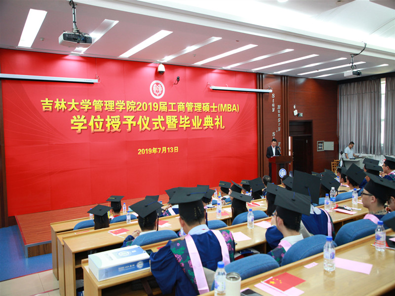 2019年7月13日上午,吉林大学管理学院2019届工商管理硕士(MBA)学位授予仪式暨毕业典礼在南岭校区逸夫教育大楼敬文厅隆重举行。学院党委书记张兴林老师,院长李北伟教授,副院长陈海涛教授,副书记方长春老师,副院长王晰巍教授以及教师代表出席了本次典礼,见证了2019届毕业生们的美好时刻。本次毕业典礼由管理学院专业学位办公室主任房伟老师主持。