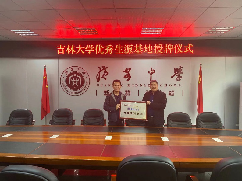 12月20日走访龙泉中学,会见党委书记、校长徐本淳、副校长李培翔、陈泽刚、教务主任杨明,授牌“吉林大学优秀生源基地”,并就续更加深入的沟通交流及持续性的招生宣传工作开展达成了共识。