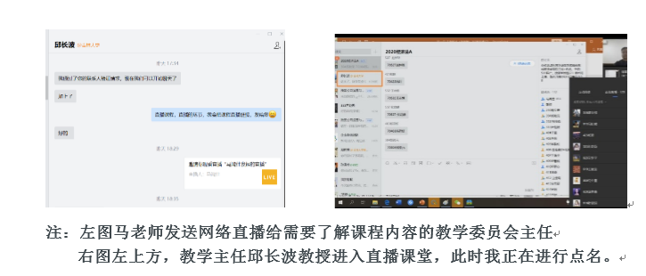 这个也很好办,在直播教学环节,把你的课程直播链接发送给要了解你课程内容的督学或者教学委员会相关听课教师,举例:马老师的首次直播课程,管理学院教学委员会主任——邱长波教授莅临课堂指导。