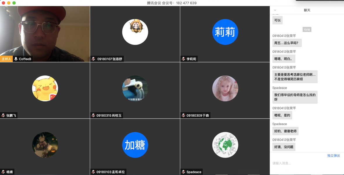 3月26日下午1点,2018级信息系统专业班本科生通过腾讯会议召开了本科生导师双选的主题班会,会议由教学班主任之一的毕达天老师主持。毕老师首先介绍了学院此项工作的目的、意义和管理科学与工程系的实施方案,将有意愿参加此次指导工作的11位老师的信息及指导方向的表格分发给大家,为大家选择提供依据。同时,通过让学生填写表格选择两个志愿和勾选是否同意调剂选项,表格中还包含了学生的个人信息及希望获得的指导方向。会议最后,毕老师还对部分学生提出来的问题进行了答疑。