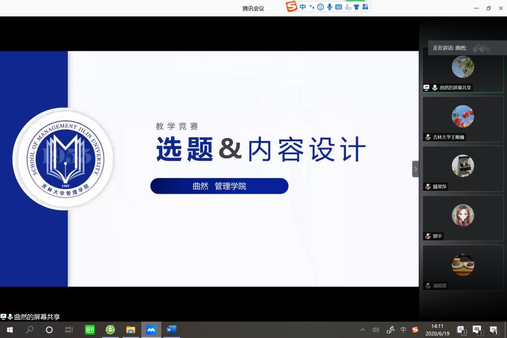 为贯彻落实“吉林大学第九届青年教师教学水平大赛”和“吉林大学第六届中青年教师双语教学大赛”,提升人才培养的质量及青年教师的教学水平,鼓励中青年教师开设双语教学课程,提高管理学院双语教学授课水平和质量,向学校推荐优秀青年教师,促进管理学院教师教学水平及教学能力的提升,在举办“管理学院第九届青年教师教学水平大赛”之前,学院邀请了以往参加过省赛和学校大赛的优秀教师,于6月19日下午14:00-15:30使用腾讯会议进行了青年教师讲课大赛赛前分享经验交流会。会议由教学副院长王晰巍教授主持。
