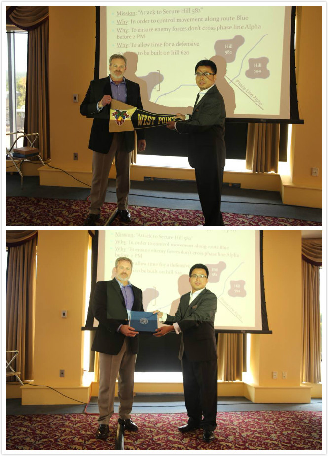 培训课程结束后,吉林大学管理学院EMBA办公室副主任张公一副教授对此次课程进行了总结,并代表学校向肖恩上校馈赠了礼物,肖恩上校表示感谢并向每位学员颁发了结业证书。
