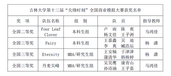 吉林大学首次参加“尖烽时刻”商业模拟大赛便取得了优异的成绩,这一优秀成果离不开学校、学院对赛事的重视和支持。在参与第13届“尖烽时刻”比赛的过程中,同学们能更好地学会发挥自己主观能动性,将商业管理的显性知识和默会知识融会贯通,增强团队间的交流与合作,全方位地提高自身的综合能力。闭幕式上,Graeme Kirkup先生的演讲中的一段话让同学们深有感触:“你自己要掌控自己的决定,时间过得太快了,所以你要让它值得”。希望下一届“尖烽时刻”能有更多的同学参与,取得更好的成绩。