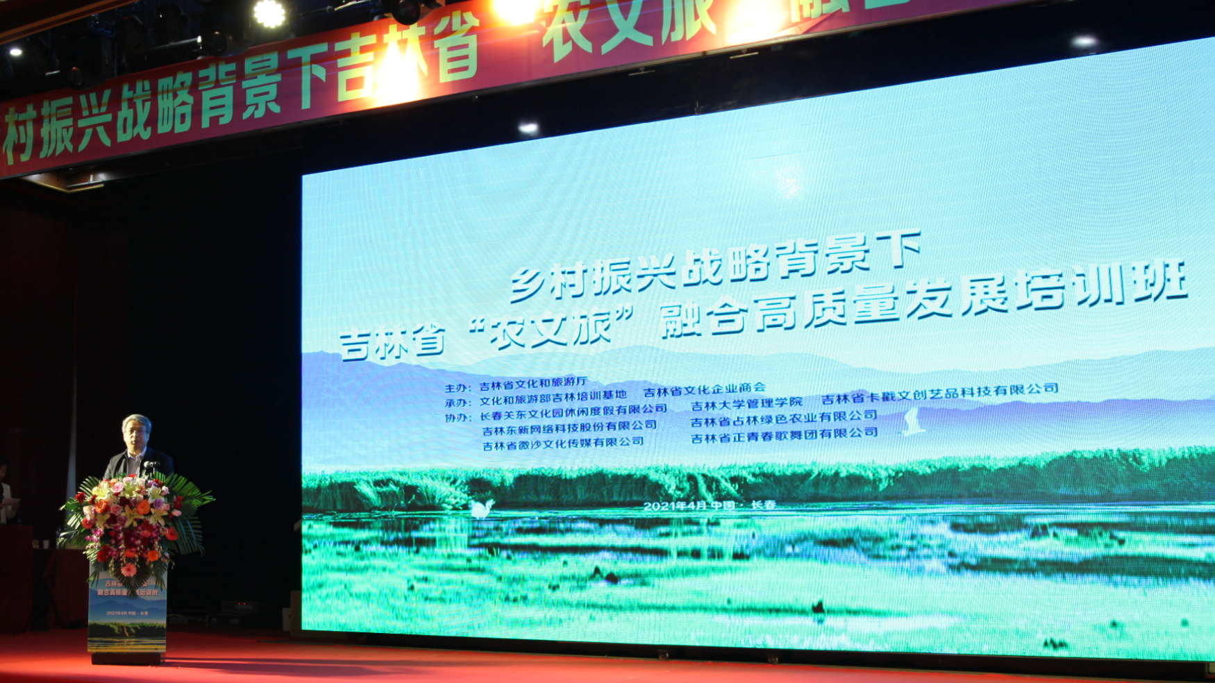 2021年4月28日,乡村振兴战略背景下吉林省“农文旅”融合高质量发展培训班开班典礼在长春市关东文化园芳草厅隆重举行。本次培训班由吉林省文化和旅游厅主办,吉林大学管理学院协办。