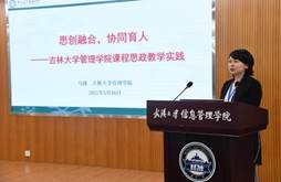 在16日上午的主题研讨大会上,武汉大学信息管理学院、南开大学商学院、中山大学信息管理学院、南京大学信息管理学院、吉林大学管理学院、北京大学信息管理系、中国人民大学信息资源管理学院依次做了主旨发言,介绍本校、本学院及图情档学科的课程思政建设思路和实践经验。吉林大学管理学院教学副院长马捷教授结合吉林大学校训“求实创新,励志图强”,管理学院院训“人本尚和,求是创新”,以及管理学院创新创业教育的突出成就和课程思政教育的目标与育人价值,做了题为“思创融合 协同育人——吉林大学管理学院课程思政教学实践”的主旨发言。马捷教授介绍了吉林大学全面落实课程思政建设工作的具体举措,并从吉林大学管理学院学科专业设置、创新创业教育成果、课程思政建设思路以及图情档学科课程思政教学实践等四个方面重点阐述了吉林大学管理学院 “思创融合、协同育人”的课程思政理念与思路,并以国家一流本科专业建设点“档案学”的课程思政实践为例,介绍了邓君教授教学团队在课程思政教学改革中的有益探索,即“理实并举,讲做结合”:结合专业特色和优势,基于“理论授课——知识点与思政元素”和“实践课堂——主题系列活动”推动“理实并举”,以“教师课堂教授+学生线下实践”双管齐下推动“讲做结合”,践行“为党管档,为国守史,为民服务”使命,发扬创新精神,传承红色基因。最后,马捷教授希望借此交流机会与兄弟院校深入交流,互相学习借鉴经验,取得共同进步。