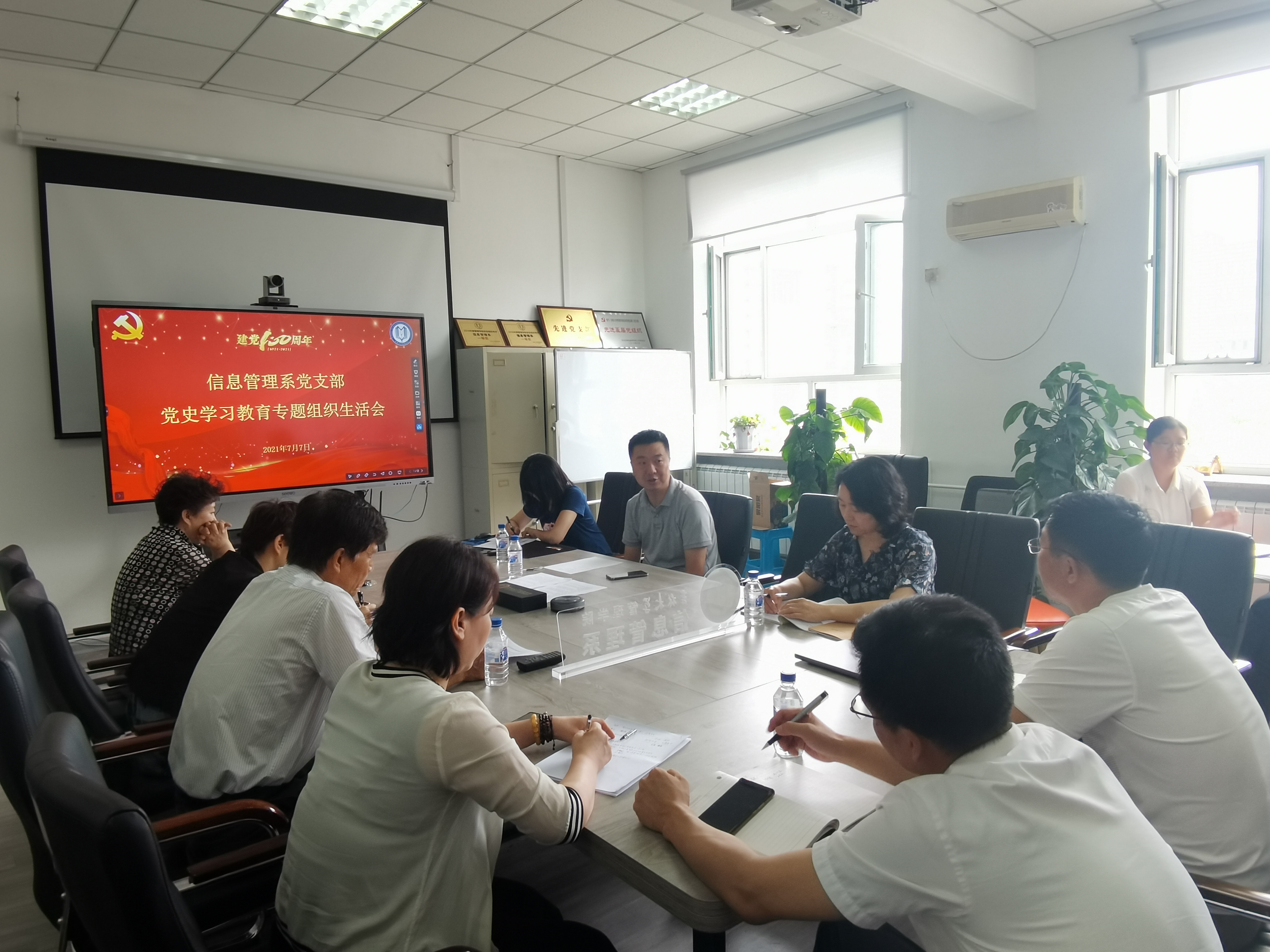 7月7日下午,信息管理系党支部召开“党史学习教育专题组织生活会”,学院党委书记赵军教授、副院长张公一教授参加督导。会议由信息管理系党支部副书记郭宇同志主持。