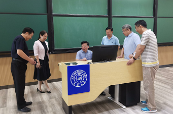 在管理学院党委书记赵军、院长李北伟陪同下,白绪贵董事长一行实地参观了管理学院多媒体教室和逸夫教育大楼的三化教室。