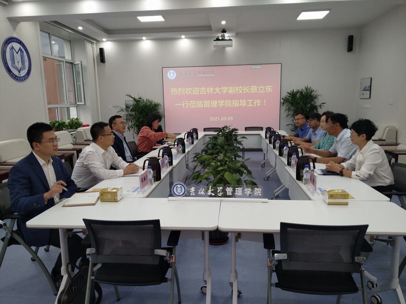 2021年9月9日下午,在全国第37个教师节即将来临之际,吉林大学党委常委、副校长蔡立东、社会科学处副处长张晓萌、副处长鲍锋及随行工作人员,到管理学院调研国家自然科学基金重大项目并慰问项目负责人原吉林大学党委常务副书记蔡莉教授,管理学院党委书记书记赵军、副院长张公一、副院长李雪灵、副院长马腾等陪同参加了此次调研活动。
