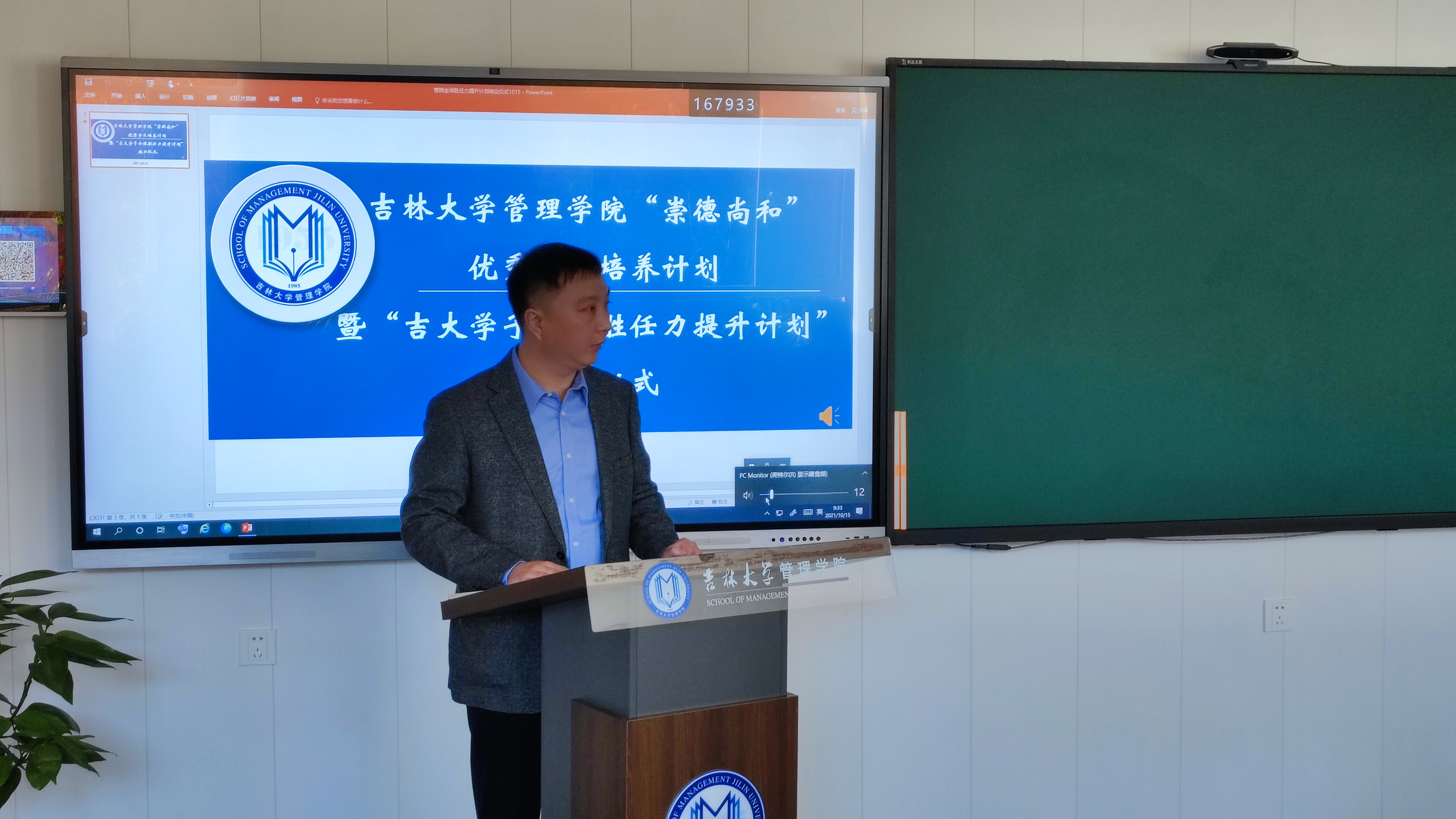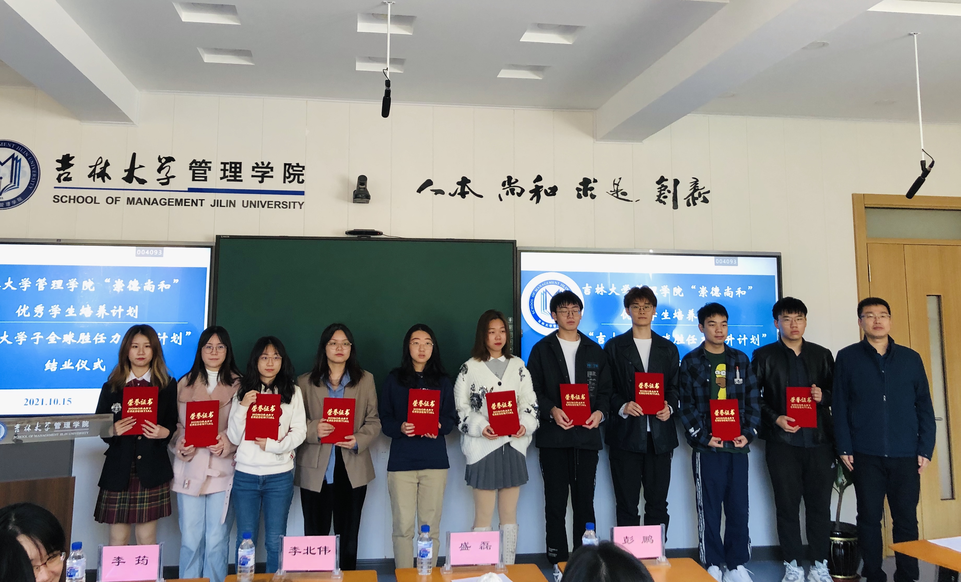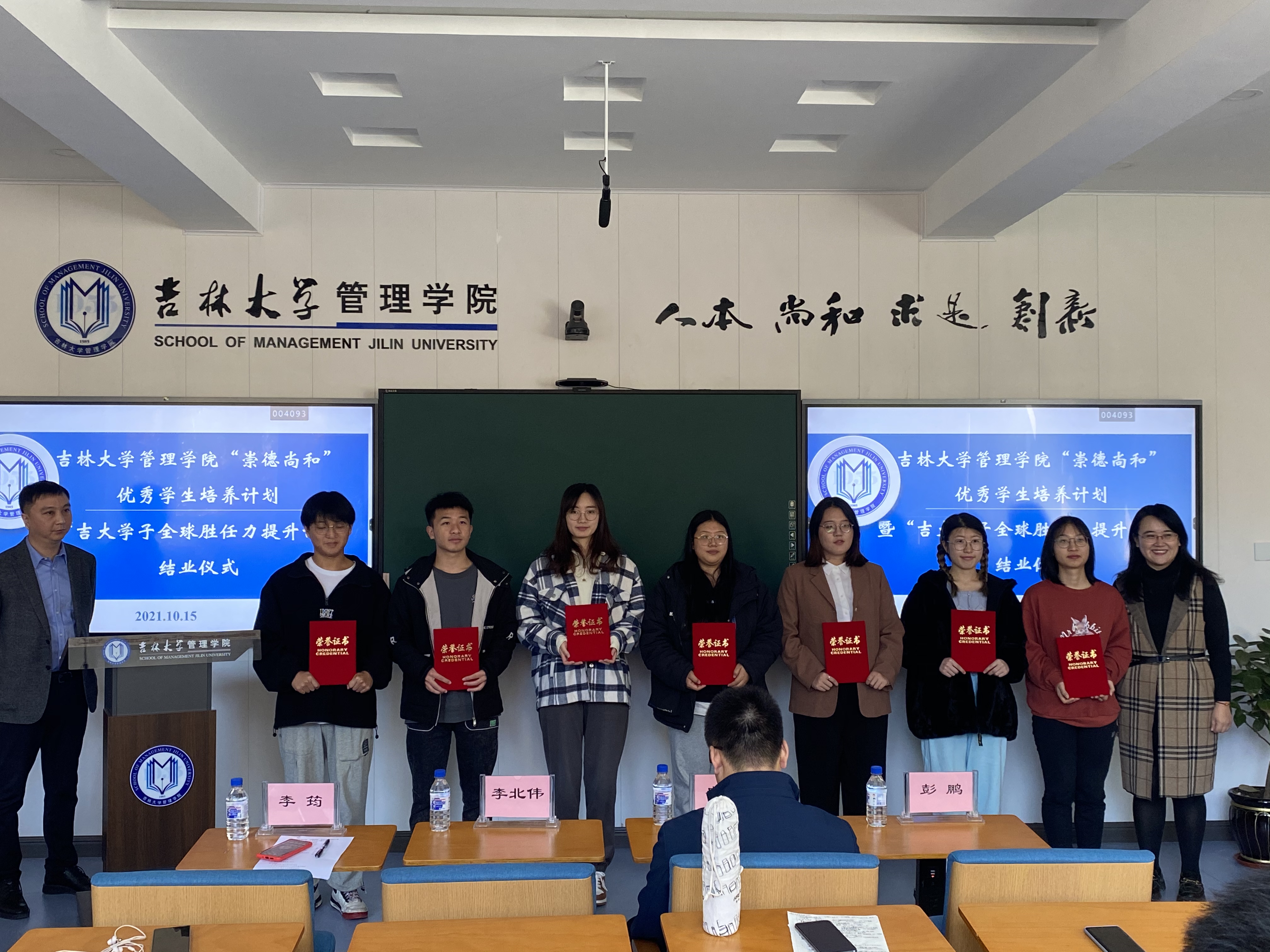 2021年10月15日,吉林大学管理学院“崇德尚和”优秀学生培养计划暨“吉大学子全球胜任力提升计划”结业仪式在管理学院多功能教室成功举办。党委学生工作部副部长盛磊,国际合作与交流处副处长李筠,管理学院院长李北伟,管理学院党委副书记兼副院长彭鹏,管理学院副院长张公一,学生辅导员,外事秘书和项目全体25名学生参加了本次活动,活动由管理学院副院长张公一主持。