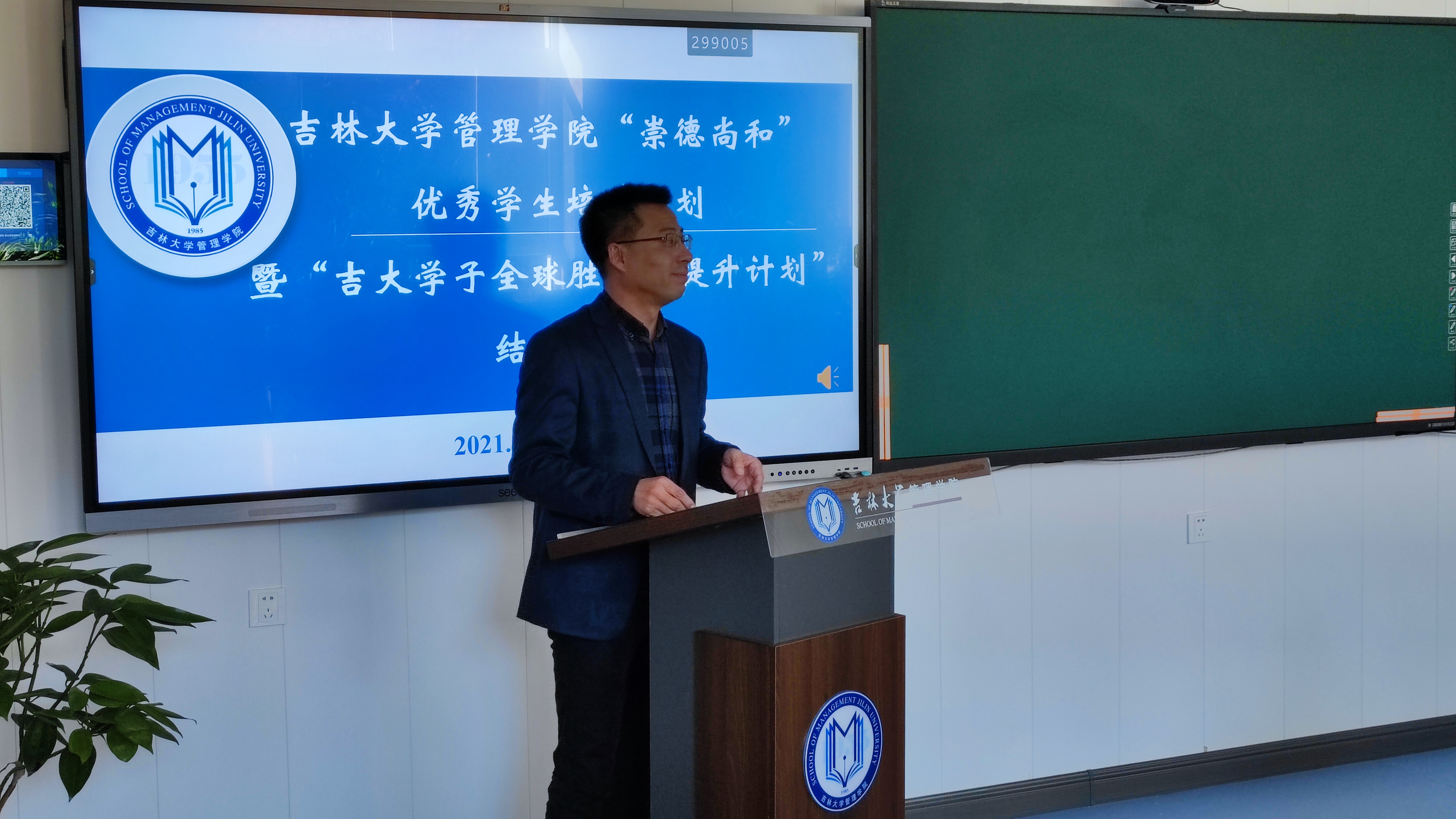 仪式最后,管理学院副院长张公一对本次项目进行了简短的总结,并对25名同学在项目中的优异表现进行了充分的肯定,他表示本次项目的实施受到了国际合作与交流处、学工部及管理学院老师的大力支持,最后圆满结束并取得了丰硕的成果,未来学院会继续为全院师生提供更多优质的国际合作项目及交流平台。最后,管理学院副院长张公一宣布吉林大学管理学院“崇德尚和”优秀学生培养计划暨“吉大学子全球胜任力提升计划” 圆满结束!