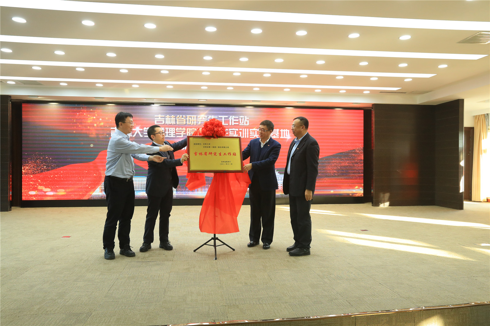 随后,闻博、徐淮良、刘树森、王化民共同为吉林省研究生工作站揭牌,宋淑敏、李北伟、刘树森、王化民共同为吉林大学管理学院研究生实训实践基地揭牌。