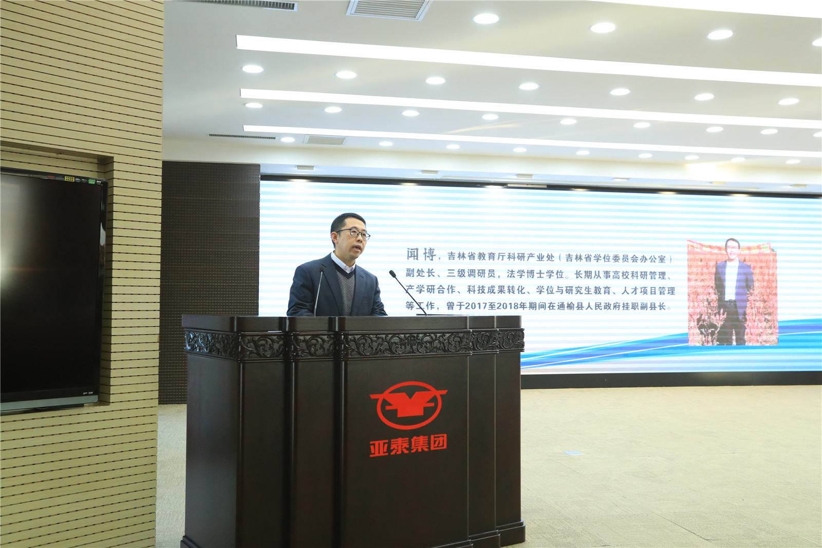 闻博副处长在讲话中指出,本次研究生工作站认定工作是为落实习近平总书记对研究生教育的重要指示和全国研究生教育会议的重要精神,强化我省“双对接双助力”行动的持续推进,同时为进一步深化科教融合、产教融合的研究生培养模式改革,有效提升研究生创新实践能力,搭建的高端人才联合培养平台。吉林大学作为教育部直属的全国重点综合性大学和国家双一流建设高校,在推进研究生教育改革,深化产学研合作和高水平服务社会方面为我省其他兄弟高校树立了良好典范。亚泰集团是全国知名的大型集团企业,多年来集团在全省经济社会发展的诸多领域都做出了卓越贡献,集团也始终密切关注着我省教育事业发展。他希望双方能够发挥各自在理论创新和实践创新的优势,加强合作,互通有无、共同发展,实现双赢,以高水平研究生工作站为新起点,为吉林老工业基地建设和吉林全方位振兴做出新的更大的贡献。