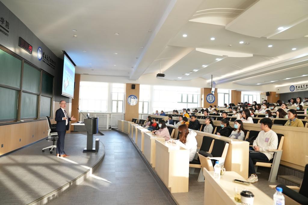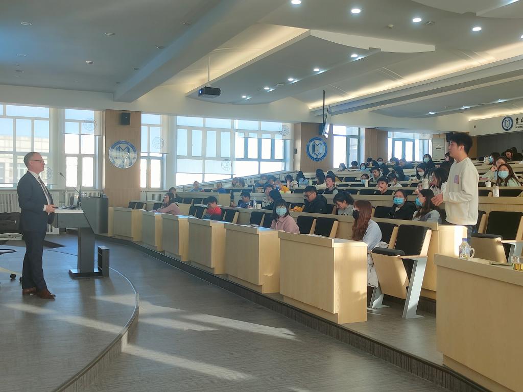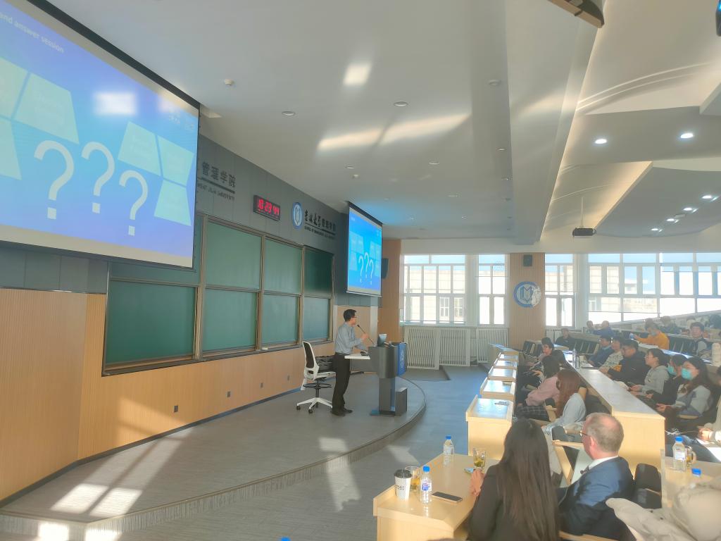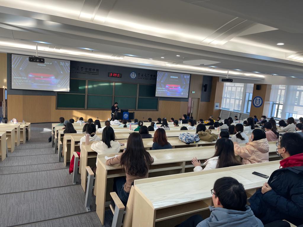 在问答环境中,我院学生以英德双语就“双碳战略对汽车行业的影响”、“汽车行业新能源竞争现状与未来机会”、“芯片供应情况对汽车行业发展限制”、“数字化技术给大型制造业带来的机会与挑战”等问题与报告人Andreas Dick副总经理进行了热切交流。最后,管理学院副院长张公一教授对本次学术汇报内容进行了总结与点评。