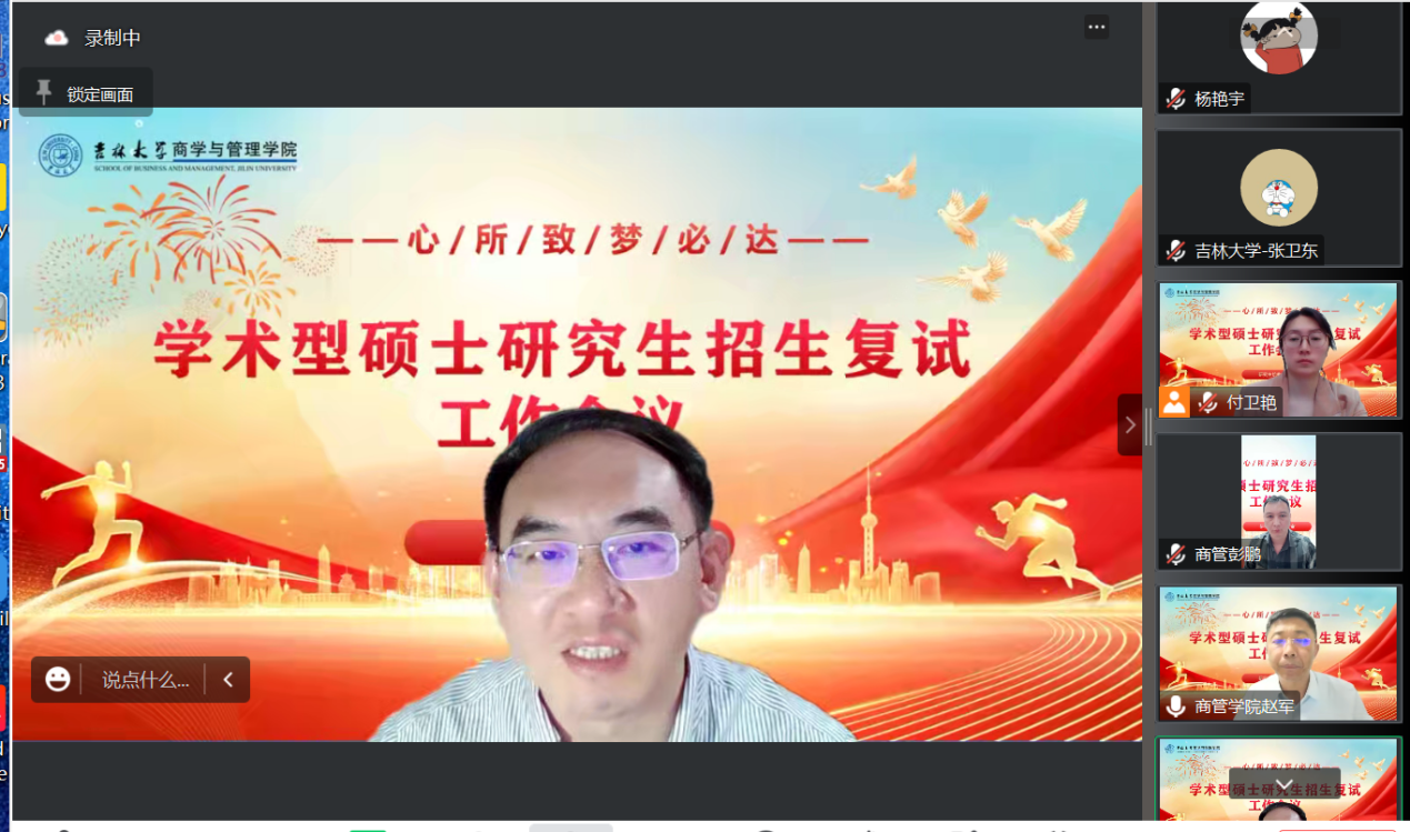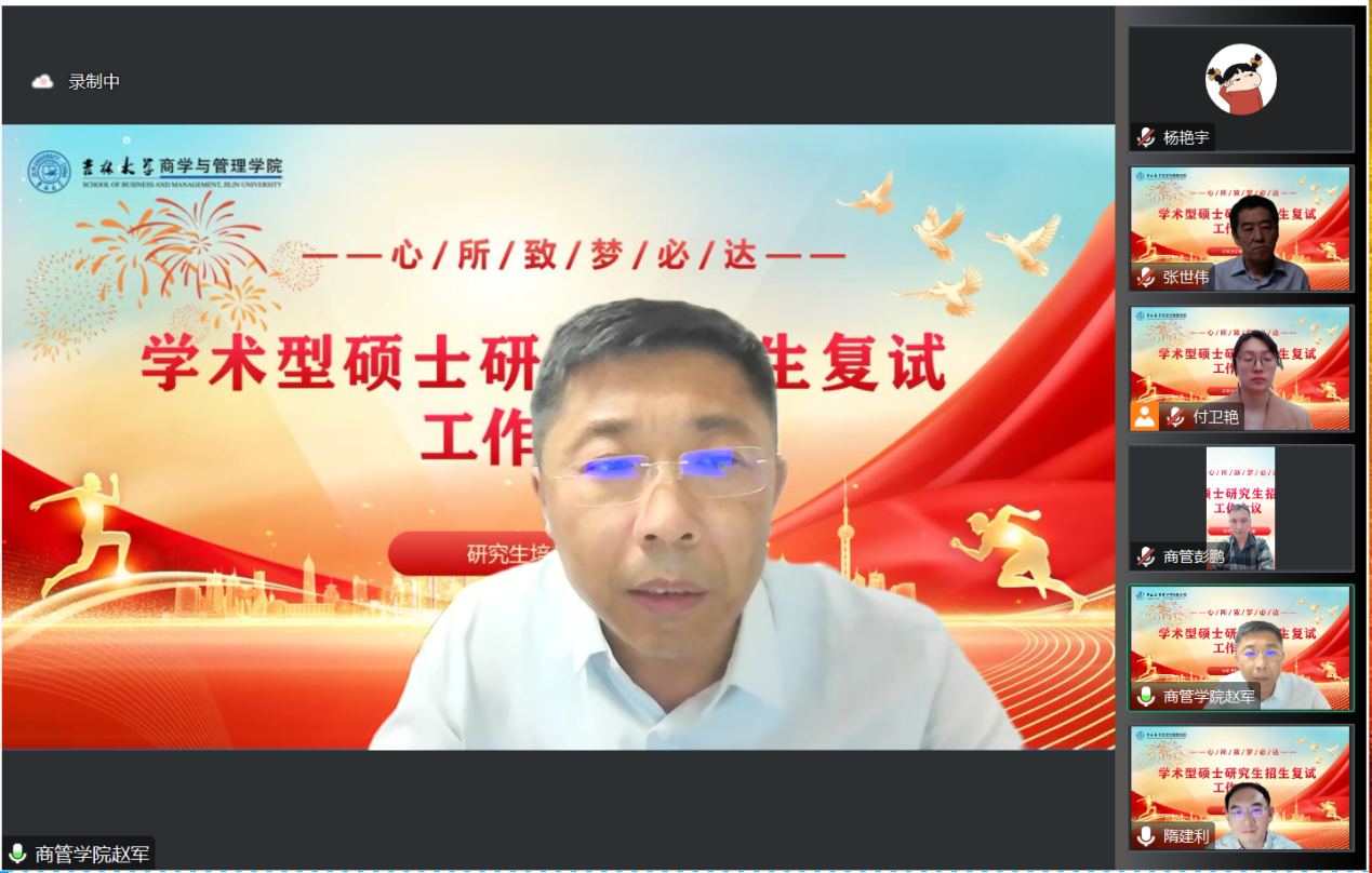 为全面贯彻落实吉林大学硕士研究生复试录取工作要求,做好2023年学术型硕士研究生复试工作,学院于 3月23日组织召开了2023年学术型硕士研究生复试工作培训会议,全面动员部署学院学术型硕士研究生招生录取工作。商学与管理学院赵军书记、张世伟常务副院长、彭鹏副书记和隋建利副院长出席会议。会议由学院隋建利副院长主持。学院84位相关复试教师及研究生培养办公室的老师参加了此次会议。