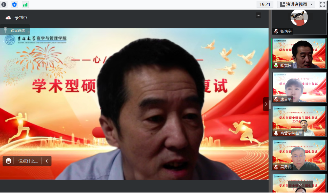 在广大教师员工精心组织、共同努力下,商学与管理学院必定能圆满完成今年的硕士研究生复试工作。