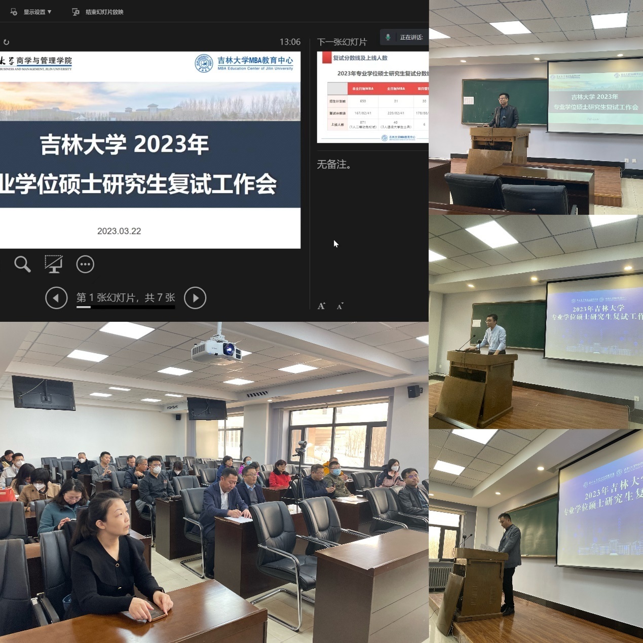 3月14日,吉林大学研究生院召开2023年硕士研究生复试录取工作会,中心立即按照相关要求启动2023年研究生复试筹备工作。成立由学院党委书记赵军教授担任组长的招生领导小组。MBA教育中心主任张公一、副主任梁志平作为主要负责人对复试过程统筹协调、严格把关、亲自督查,确保硕士研究生复试录取工作顺利开展。