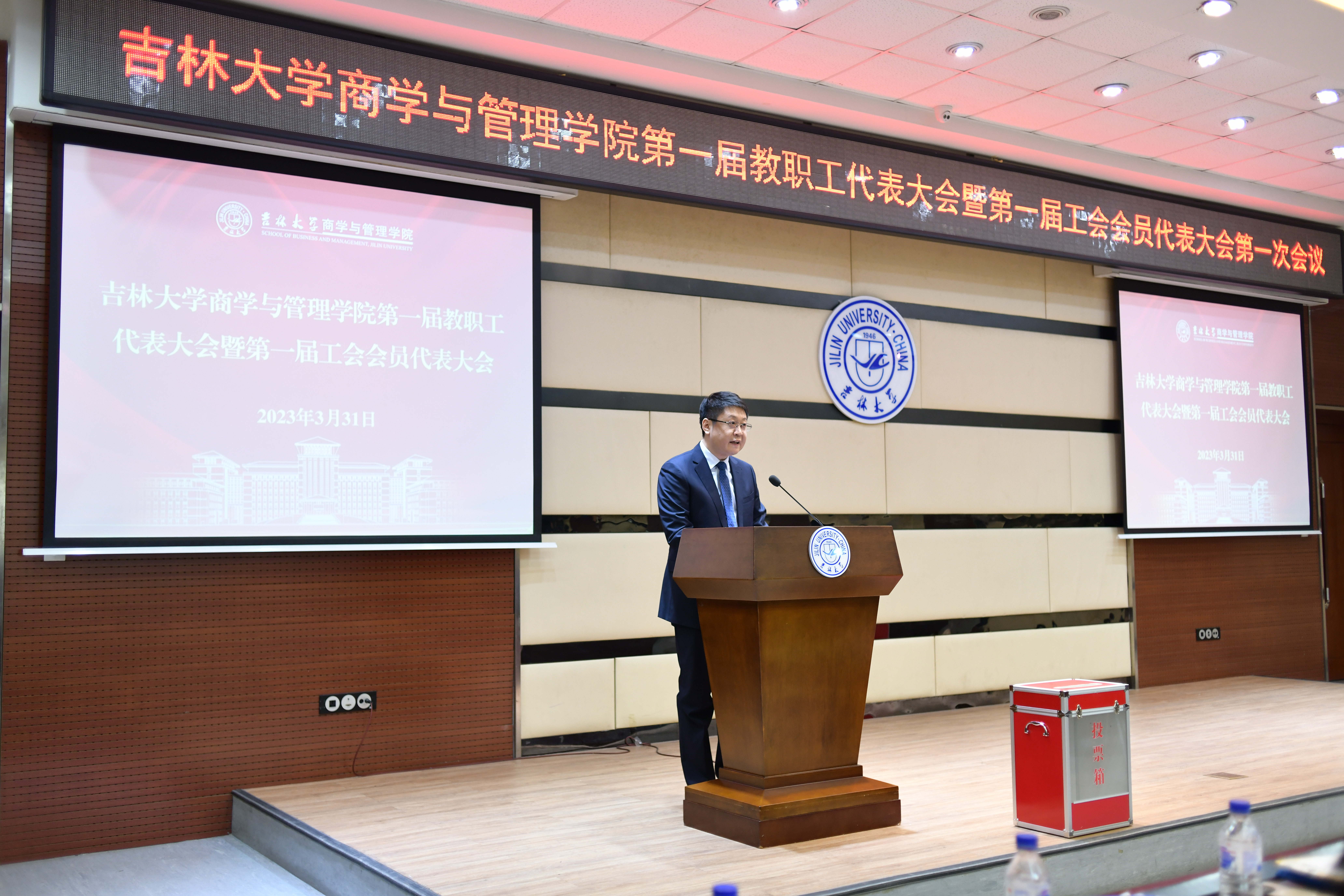 大会最后,吉林大学党委常委、副校长兼商学与管理学院院长蔡立东教授发言,对学院教代会、工会过去一年来取得的成绩给予了充分肯定,对大会的成功召开表示了祝贺。他指出,本次学院双代会是一次意义重大的民主实践活动,通过充分的意见征求、多轮次的细致讨论、深层次的总结提炼,学院代表们提出了许多有建设性的提案、想法,成为了学院下一步工作开展的重要助力。同时,本次双代会也盘点了过去一年学院取得的成绩,回应了教职工群体的关切,肯定了学院各方面的工作成效,加强了学院教职工之间的理解。同时,学院也通过此次双代会充分挖掘了在发展过程中的一些疏漏之处,这对学院下一步的建设和发展有着十分重大的意义。蔡立东教授表示,学院在全体教职工的努力奋斗下,一定会取得更为卓越的成就,一定能绘就更美丽的画卷。