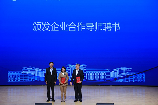 赵军书记向国信集团健康板块副总经理兼养老公司总经理崔维娜女士、国信旅游集团总经理夏宏宝先生颁发企业合作导师聘书。