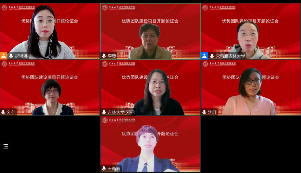 蔡立东校长在致辞中对专家学者云端莅临表示欢迎和感谢。蔡校长指出吉林大学商学与管理学院于2021年12月由吉林大学原商学院和原管理学院整合组建而成,通过结构性调整汇聚优质教育资源,进一步进行学科优化与优势整合。学院组建以来贯彻学校党委的要求,进行物理融合、化学融合以及心灵融合的长期培育。为助力《吉林大学哲学社会科学高质量发展行动计划》,推动学院学科内涵建设,优化学科结构,凝练学科方向,强化团队建设、整合优势资源,实施“团队+项目+成果+人才+平台”五位一体的建设模式,学院于去年12月正式启动了吉林大学商学与管理学院学科跃升计划,今天开题的是以李贺教授为首席专家的优势团队建设计划。感谢各位专家在百忙之中支持信息资源管理学科的发展。