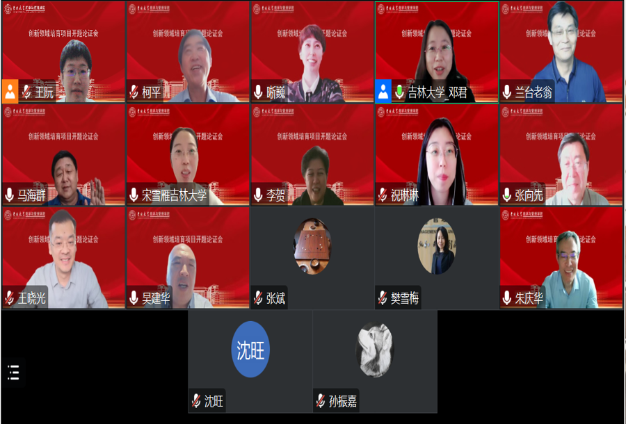 5月15日下午,商学与管理学院创新领域培育计划项目团队“数字人文视域下文化遗产资源语义组织与智慧服务”开题论证会以线上会议方式召开。来自南开大学、中国人民大学、武汉大学、南京大学、黑龙江大学、安徽大学等国内著名高校的专家学者齐聚云端,共同研讨数字人文视域下文化遗产资源建设等科学问题。开幕式由吉林大学商学与管理学院副院长樊雪梅教授主持,商学与管理学院党委书记赵军教授出席开幕式并致辞。