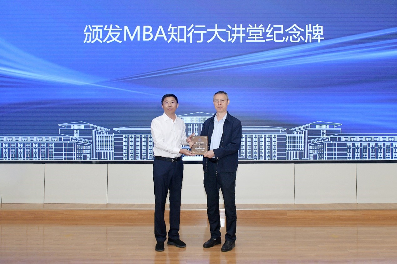 赵军书记为林君院士颁发“MBA知行大讲堂纪念牌”。