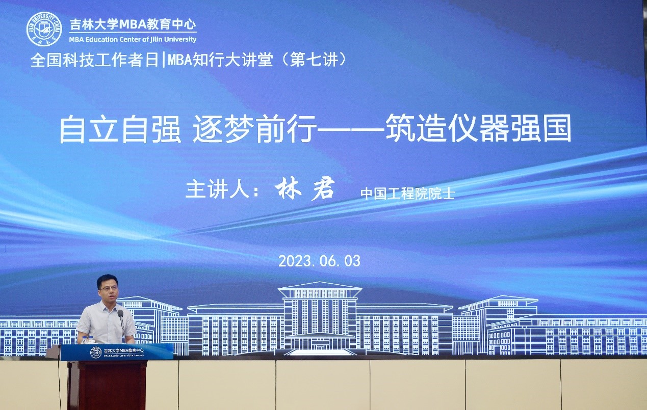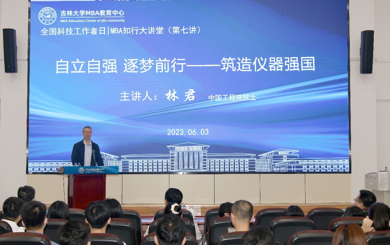 6月3日上午,恰逢第七个“全国科技工作者日”之际,MBA知行大讲堂(第七讲)在数学楼报告厅隆重举行。中心特邀中国工程院院士、吉林大学地球科学学部学部长林君院士做题为《自立自强 逐梦前行——筑造仪器强国》专题讲座。吉林大学商学与管理学院党委书记赵军出席活动并致辞。讲座由MBA教育中心主任兼商学与管理学院副院长张公一主持。