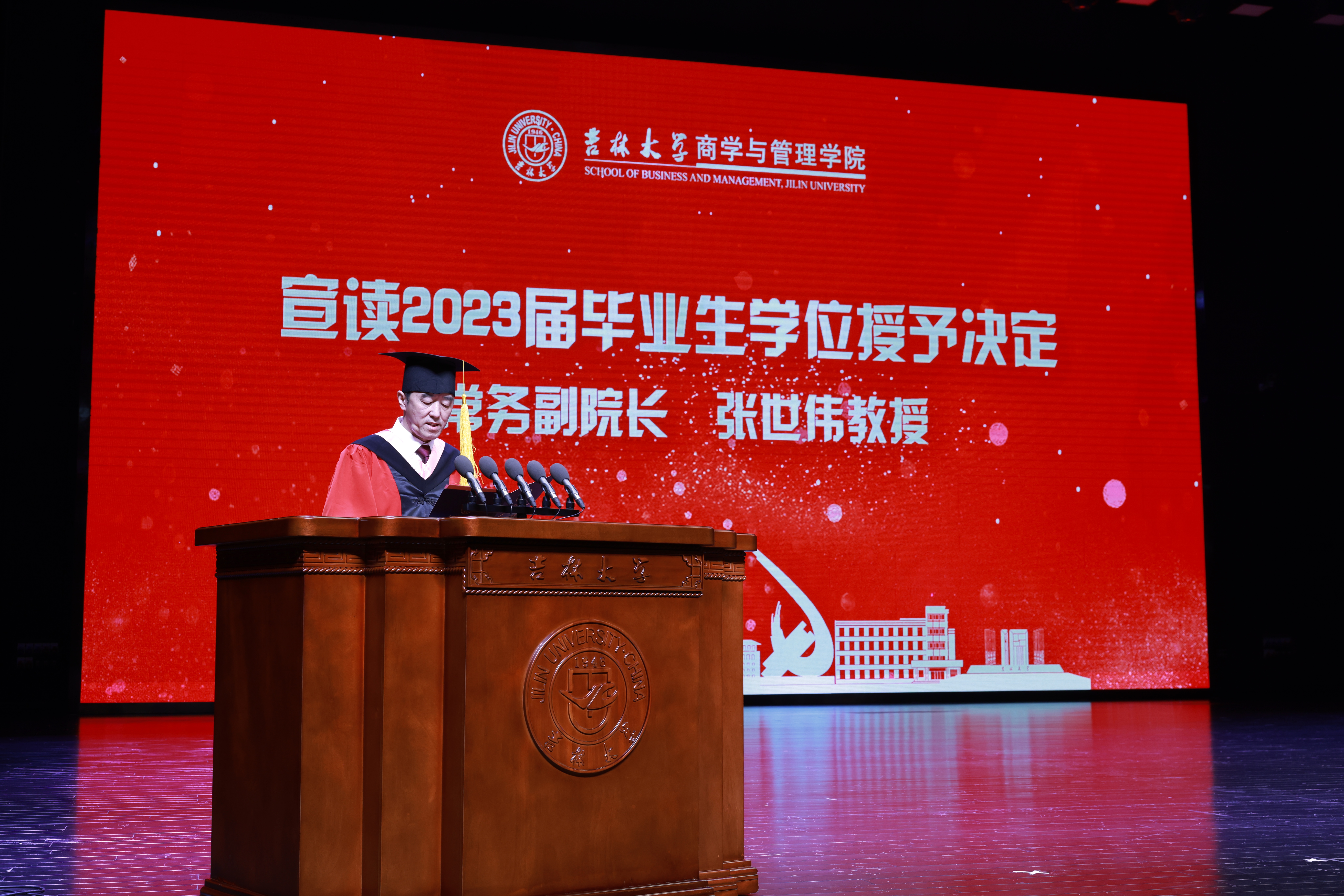 典礼上,商学与管理学院常务副院长张世伟教授宣读了2023届本科生、硕士研究生和博士研究生授予学位决定。