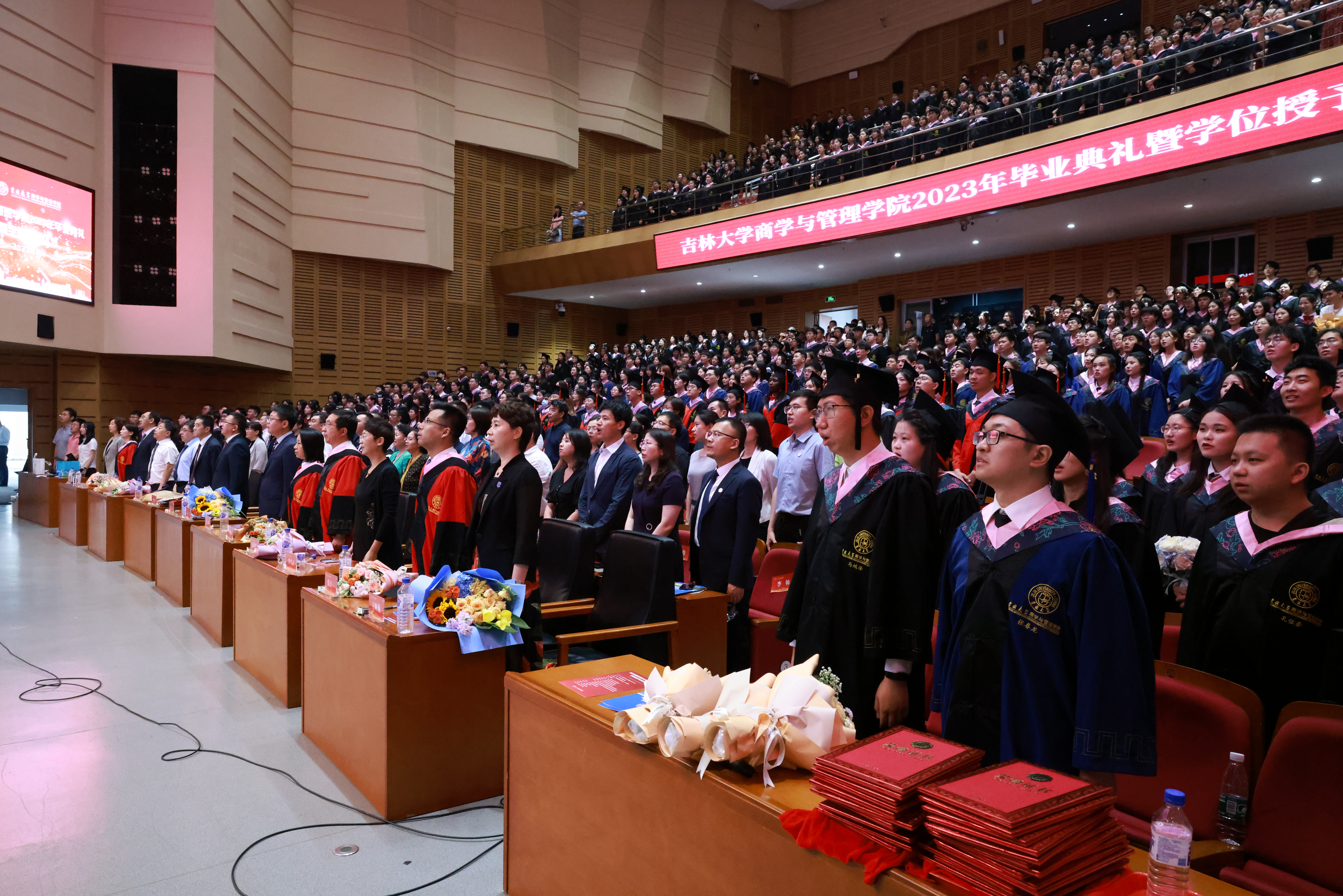 毕业典礼在众人齐声高唱的国歌声中正式拉开序幕。