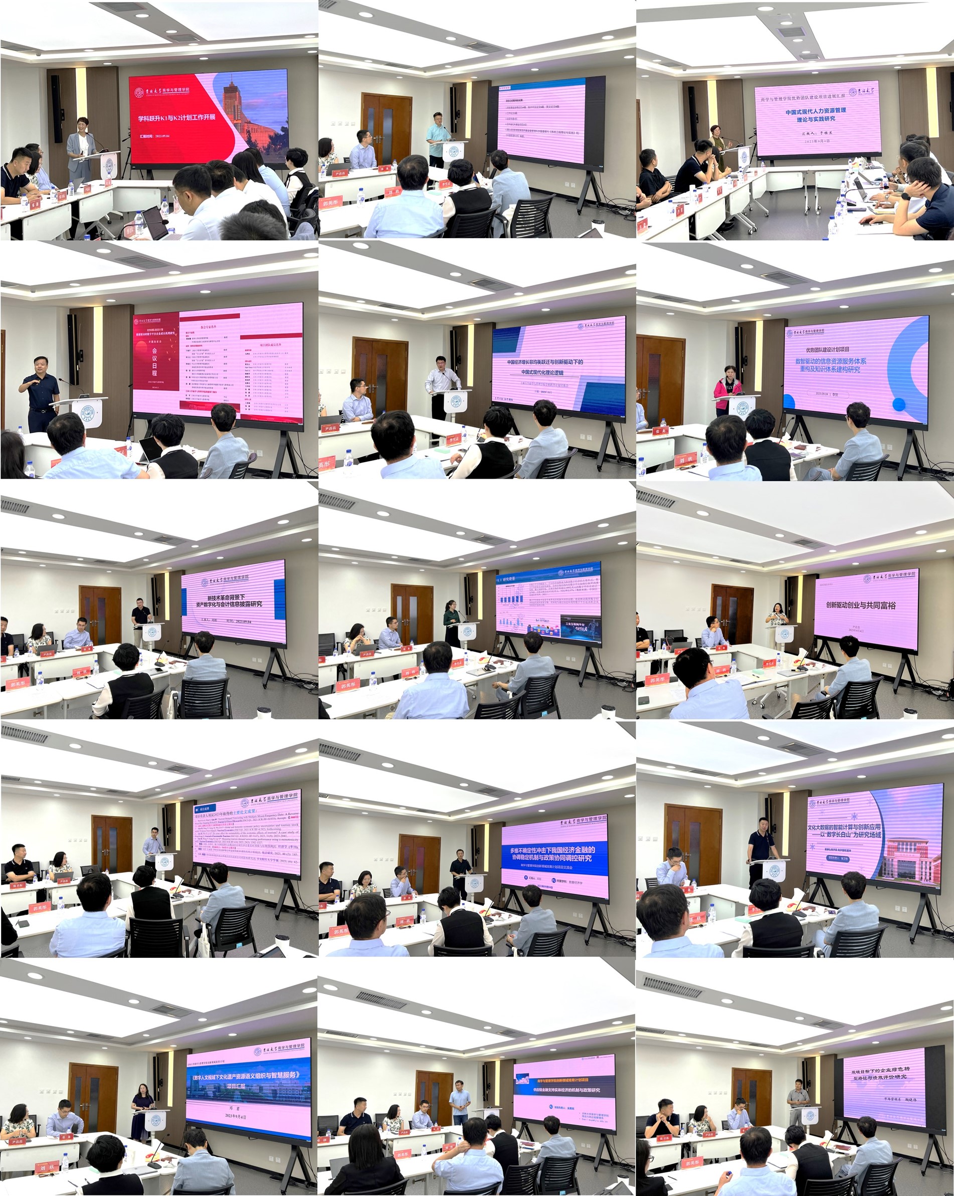 为全面落实吉林大学“平台工程”战略,推动学院“一流”学科内涵建设,优化学科结构,凝练学科方向,整合优势资源,深化协同创新,提升学科建设水平和管理效能,开创高质量发展新局面,2022年,学院出台了《商学与管理学院学科水平跃升计划(2022-2024年)》,坚持“立足当前、着眼长远,系统推进、分步实施,质量导向、内涵发展”的基本思路,以建设国内一流、国际知名的高水平学科为目标,围绕六项关键行动计划(即“K6行动计划”)整体推进,力争到2024年,取得“12345”学科建设成效,实现“高峰”学科突破跃升,彰显“高原”学科特色发展,不断增强学院学科整体实力。经过团队申报、专家论证、第三方学术机构评审等方式,学院2022年度优势团队建设计划项目和创新领域培育计划项目立项的负责人围绕项目建设过程中的经验、问题,以及未来建设过程中的设想进行了充分讨论。