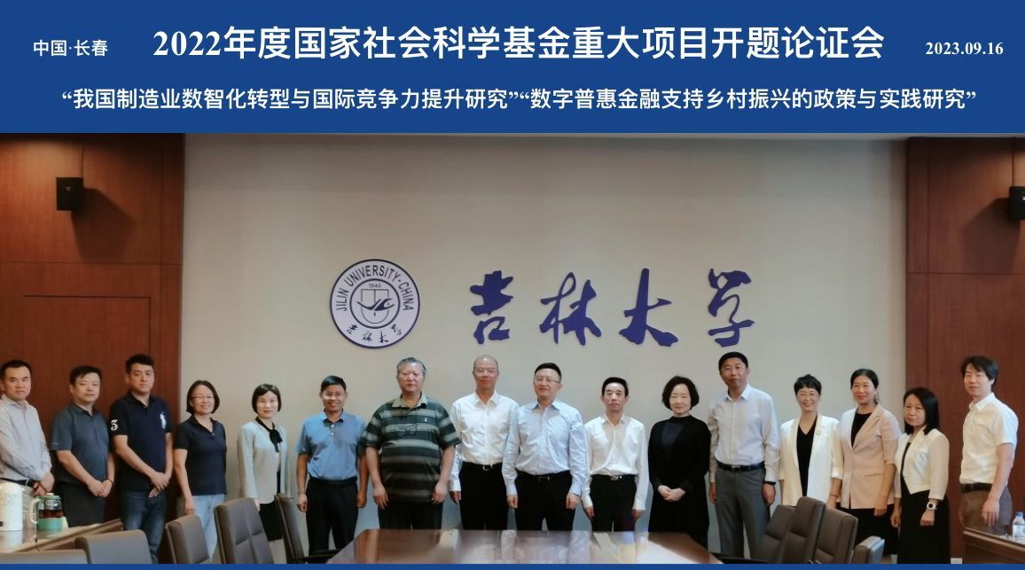 2023年9月16日上午,由吉林大学商学与管理学院李雪灵教授担任首席专家的国家社会科学基金重大项目“我国制造业数智化转型与国际竞争力提升研究”,以及丁志国教授担任首席专家的国家社会科学基金重大项目“数字普惠金融支持乡村振兴的政策与实践研究”开题论证会在吉林大学匡亚明楼第三会议室成功召开。