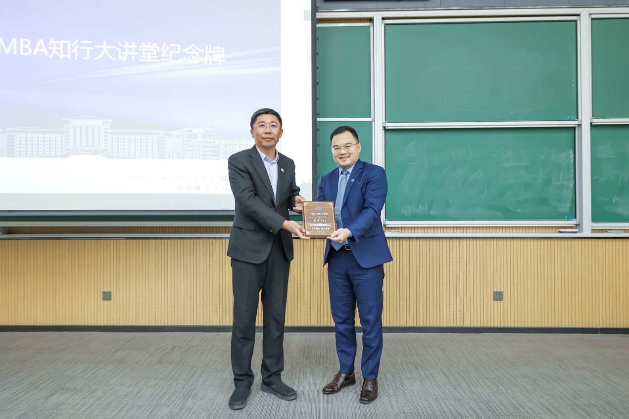 赵军书记为高岗副总裁颁发“MBA知行大讲堂纪念牌”。