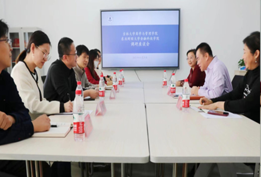第一调研组由应用金融系丁志国教授、董竹教授、孙秋枫副教授三人组成,于2023年11月20日赴东北财经大学进行学科调研,与东北财经大学金融科技学院副院长李凤羽教授、副院长王谨乐副教授及教师代表进行了座谈。李凤羽副院长介绍了东北财经大学金融科技学院创建的历史、师资情况、人才培养、招生以及毕业生就业等情况。丁志国教授说明了此次调研的目的和希望交流的多方面问题。董竹教授介绍了吉林大学商学与管理学院的基本情况以及应用金融系师资队伍、科学研究和专业建设情况。随后,双方就专业定位、人才培养、跨学科师资培育、海外高水平人才引进、学术科研、学界业界跨界融合等重点问题进行了深入的交流。
