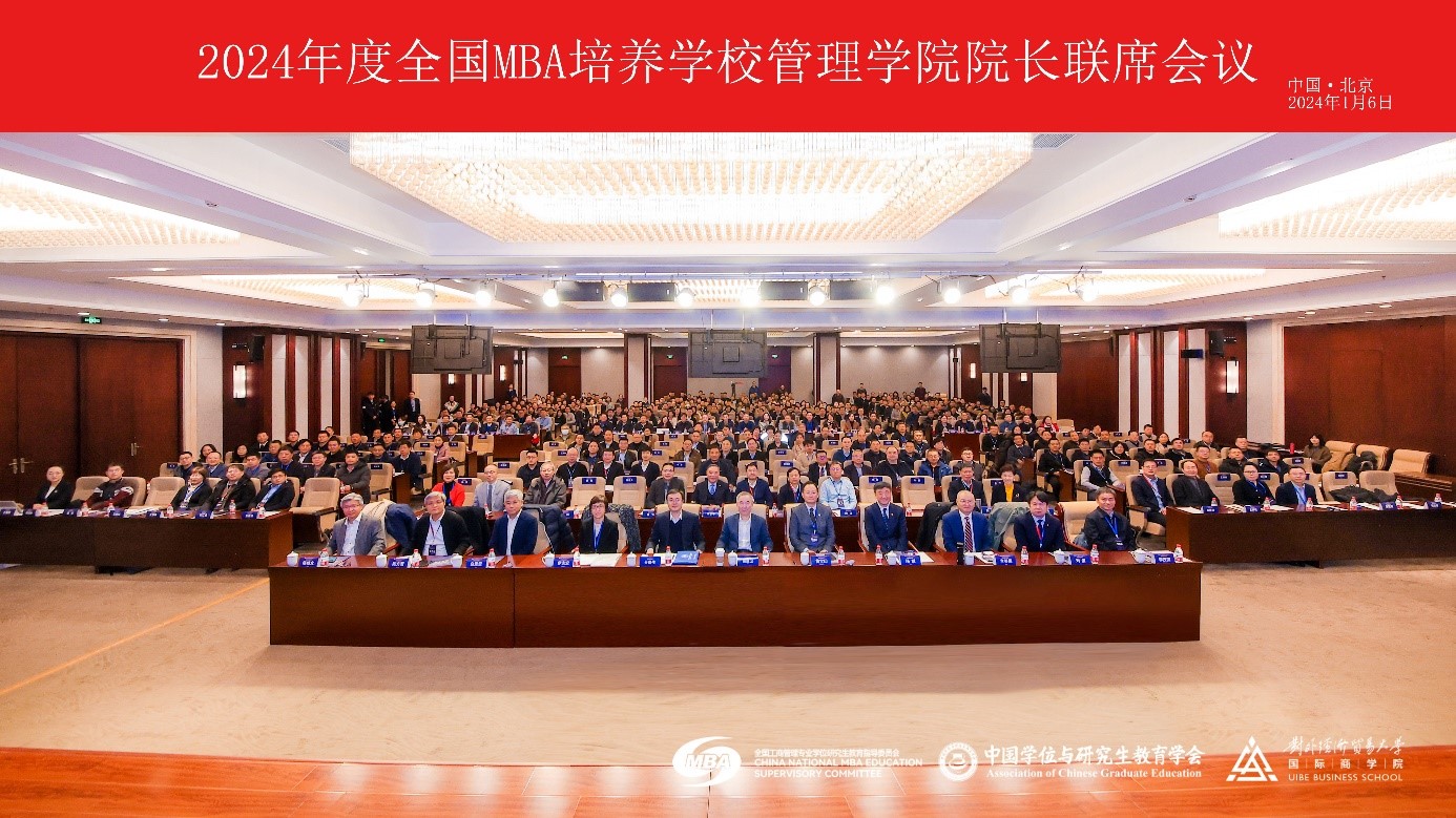为贯彻落实党的二十大精神,聚焦发展需求,研讨改革创新,加强工作交流,进一步推动工商管理专业学位研究生教育高质量发展,根据全国工商管理专业学位研究生教育指导委员会工作计划,2024年度全国MBA培养学校管理学院院长联席会议于2024年1月6日在北京召开。吉林大学MBA教育中心主任兼商学与管理学院副院长张公一、中心副主任印重参加会议。本次会议由全国工商管理专业学位研究生教育指导委员会、中国学位与研究生教育学会主办,对外经济贸易大学国际商学院承办。