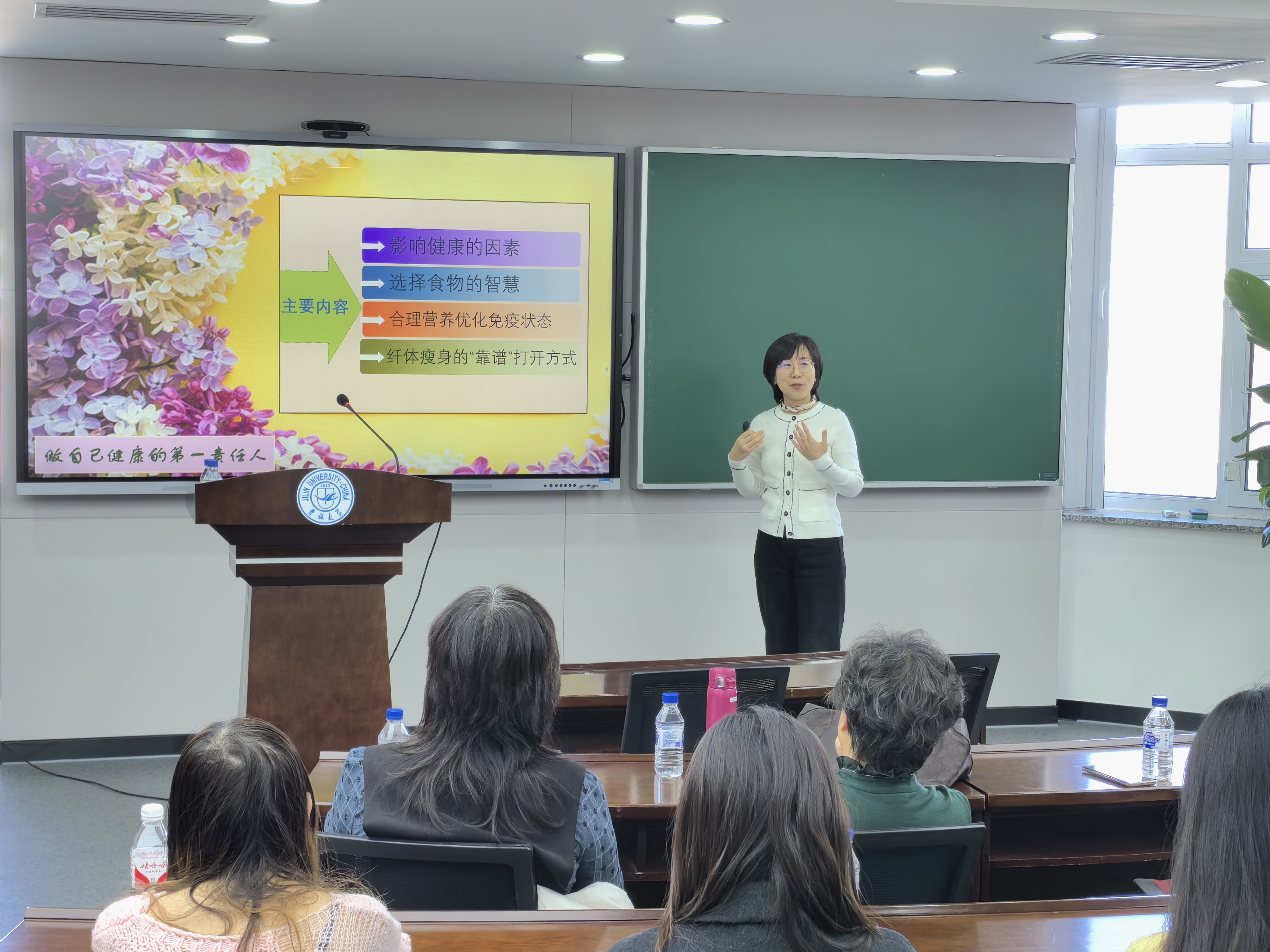 为了提升学院教职工群体健康意识,丰富教职工健康常识储备,商学与管理学院于3月12日13:30在东荣大厦A604室举办了健康膳食讲座。本次讲座由商学与管理学院妇委会法律宣传员、外事办公室主任王春艳主持,特别邀请到了吉林大学公共卫生学院教师、医学博士刘华锋主讲,学院近百名师生参加了本次讲座。