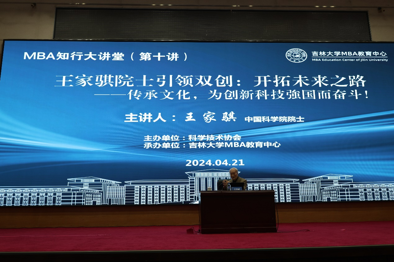 4月21日上午,MBA知行大讲堂(第十讲)在东荣会议中心报告厅成功举办。中心特邀中国科学院院士王家骐做题为《开拓未来之路——传承文化,为创新科技强国而奋斗》专题讲座。吉林大学MBA教育中心主任兼商学与管理学院副院长张公一出席活动。讲座由吉林大学创新创业教育学院副院长费宇鹏主持。