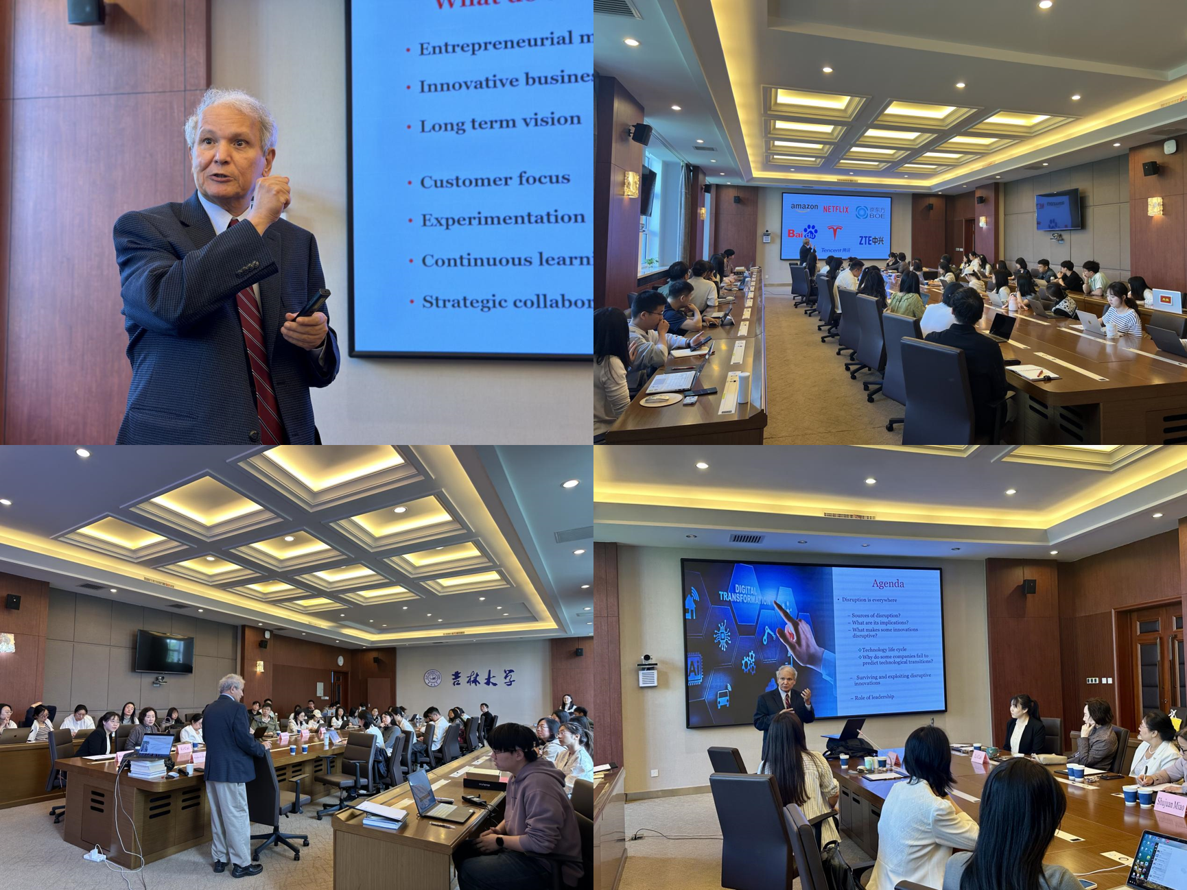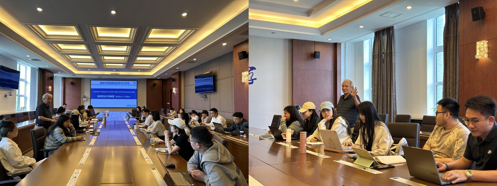 Shaker A. Zahra教授在吉林大学匡亚明楼二楼第三会议室进行了两场学术报告,吸引多个研究领域的40余名师生到场聆听,现场座无虚席,氛围高涨。