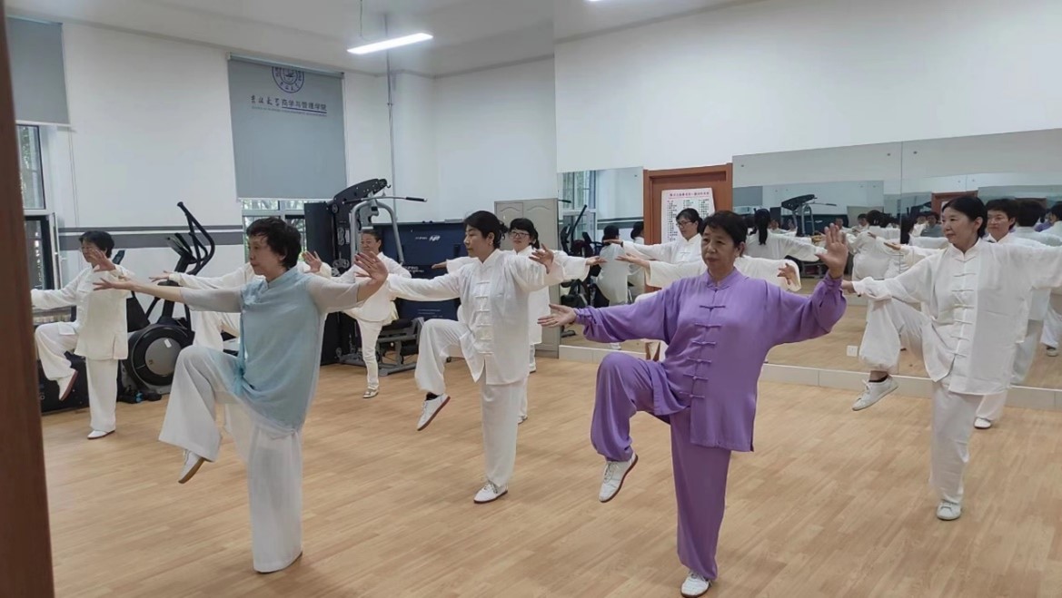 在毕业仪式上,大家一起观看了记录太极拳社团点点滴滴的回忆视频,在张秋惠教练的悉心指导下,太极拳社团的拳友们先后学习了陈式太极拳(老架一路)、太极功夫扇、陈氏四十九式太极拳等,社团从一开始没有固定练习地点的“初创时期”到学院组建后有宽敞明亮活动室的“成熟时期”,队伍愈发壮大,团队也日益精进。随后,太极拳社团全体教师以飒爽的风姿、昂扬的风貌,共同打完了毕业前“最后一套拳”。张秋惠教练认真为拳友们纠正姿势,喊号发令。全体拳友聚精会神,一招一式间无不彰显出平日训练的刻苦。拳落收势,全体拳友纷纷为张秋惠教练鼓掌致敬,掌声久久不息。