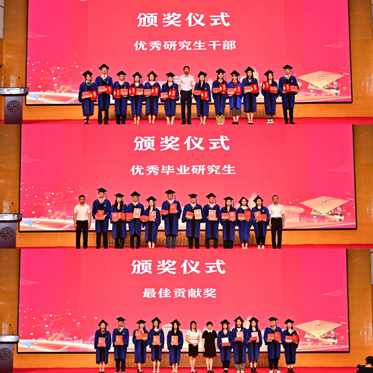 商学与管理学院党委书记赵军教授,党委副书记兼副院长李帅老师、党委副书记马腾老师,副院长刘欣老师、中心副主任林晶老师,分别为MBA“优秀研究生干部”“优秀毕业研究生”“最佳贡献奖”获奖学生代表颁发荣誉证书及纪念品。