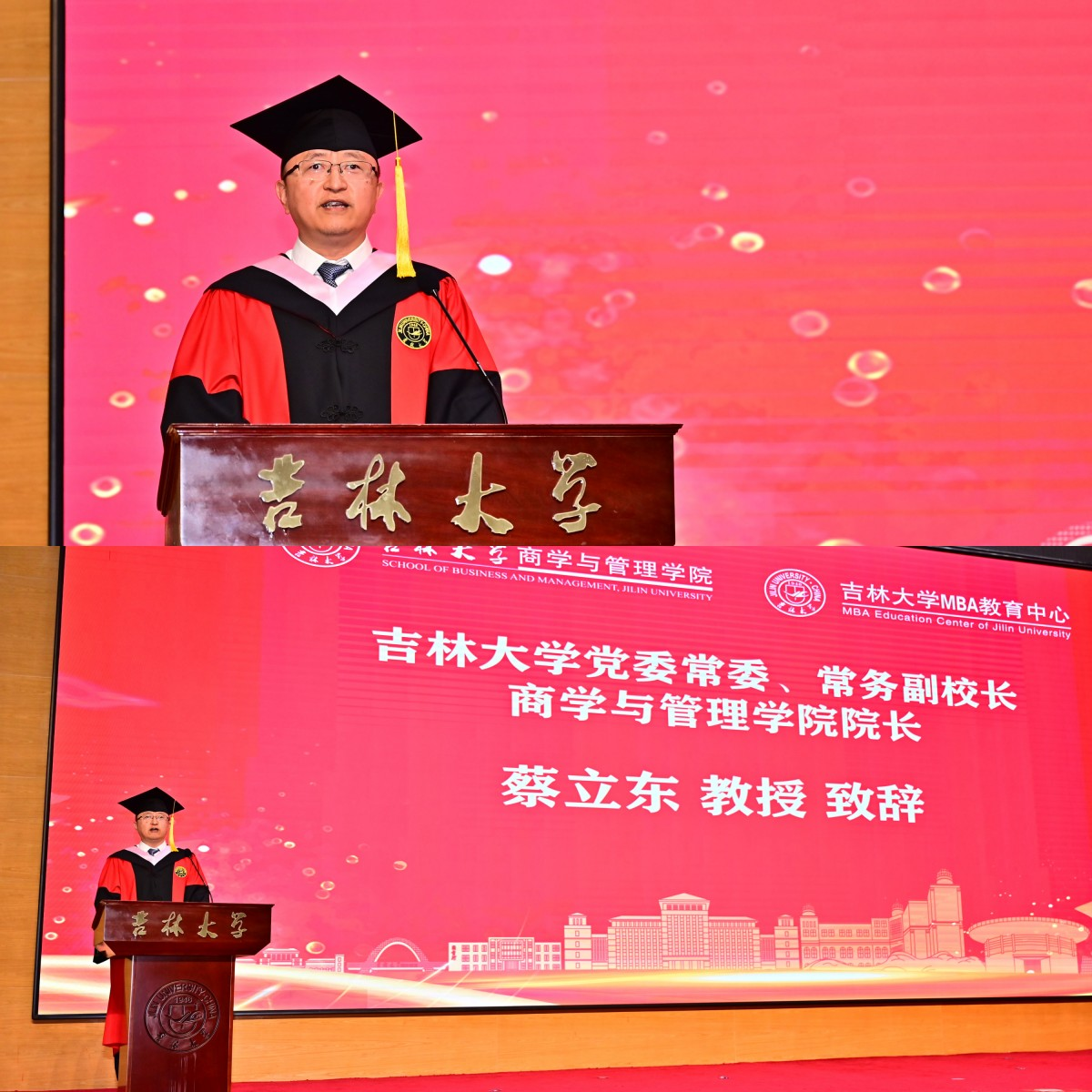 六月的长春,万物竞长,风华日暖;六月的吉大,草木葱茏,芳菲欲燃。6月30日上午,吉林大学商学与管理学院MBA2024年毕业典礼暨学位授予仪式在东荣会议中心会议场馆报告厅隆重举行。吉林大学党委常委、常务副校长、商学与管理学院院长蔡立东教授,商学与管理学院党委书记赵军教授以及学院领导班子全体成员与2024届全体MBA、MEM毕业生同堂共庆,共襄盛举。典礼由MBA教育中心主任兼商学与管理学院副院长张公一教授主持。