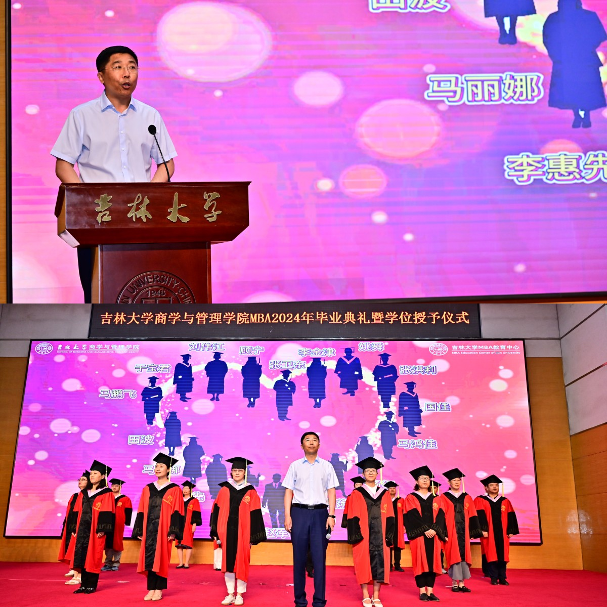 典礼上,商学与管理学院学位评定分委员会副主席、商学与管理学院副院长隋建利教授宣读了《吉林大学关于授予2024届专业学位硕士毕业生学位的决定》。